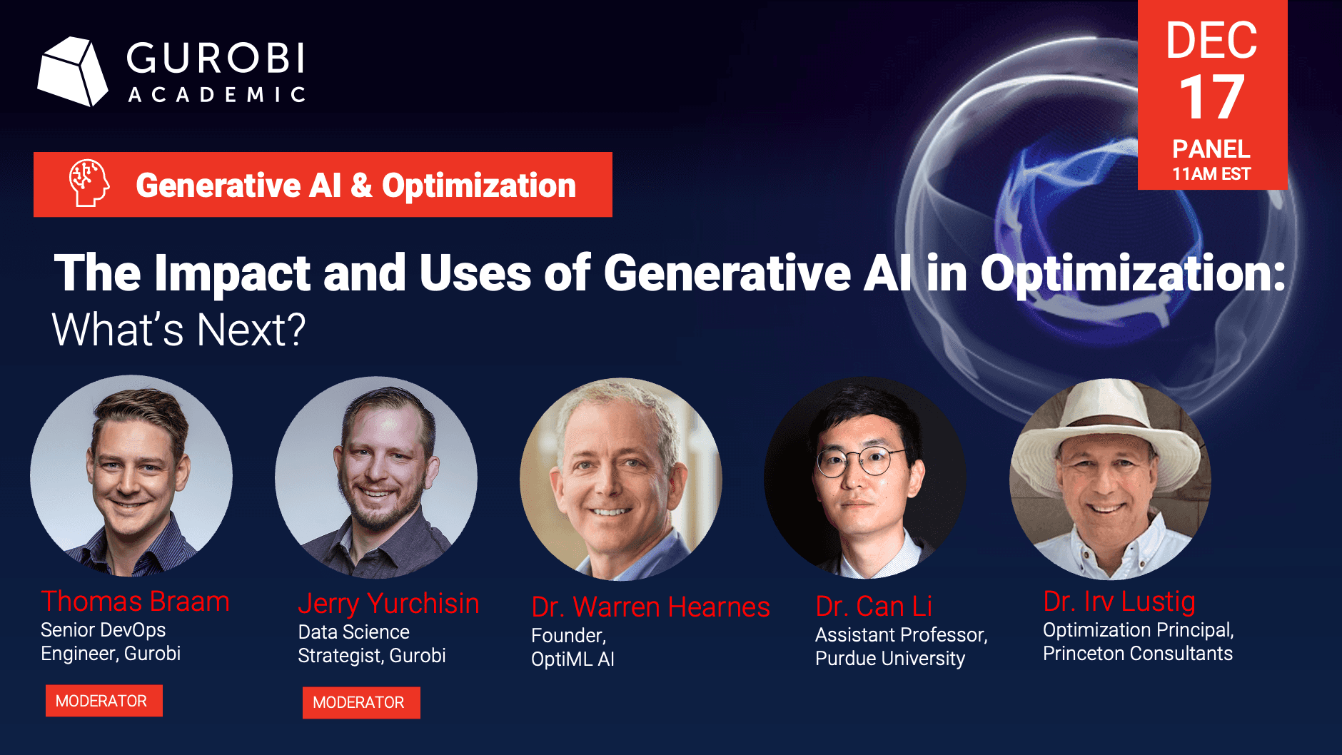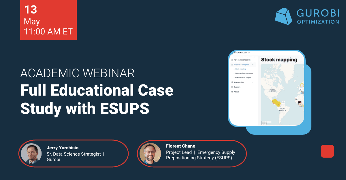 Data science is used to help improve decision-making, and is now applied to nearly all industries, academic research and curriculum that require enhanced decision-making with complexity. This webinar will explore how mathematical optimization is an invaluable tool to enhance decision-making and how it works seamlessly with machine learning to help problem solvers get the most out of their well-tuned predictive models. In this webinar, we will deliver: A brief introduction to math optimization and its use cases. A new modeling example in action that truly takes you from data to optimal decisions. An example from Gurobi’s set of ready-to-solve models, where you can use optimization with no prior experience. We’ll then wrap up by covering all the learning material Gurobi has made freely available for anyone to use. Don't miss out – let's dive into the world of data-driven decision-making together. Jerry has over a decade of experience in operations research, data science, and visualization, specializing in enhancing decision-making with data. Before joining Gurobi, Jerry worked in consulting at OnLocation, Inc. & Booz Allen where he supported numerous projects by building and customizing mathematical optimization models and leveraging machine learning, applied statistics, and simulation—all to support decision-making through data-driven narratives. Jerry also has a background in college-level mathematics instruction. Now, at Gurobi, Jerry aims to promote the integration of mathematical optimization into the data science and broader AI communities.