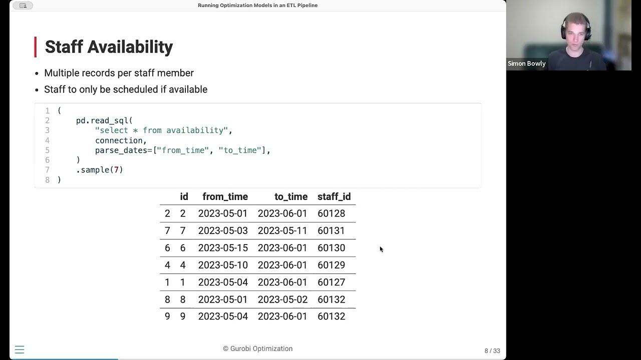 Join us for an informative on-demand webinar where we’ll explore the tools that Gurobi has developed to facilitate integration of optimization models into extract, transform, and load (ETL) pipelines.